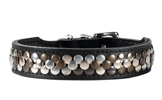 Skórzana obroża ze skóry bydlęcej z ćwiekami. W kolorze czarnym, o długości 37cm.