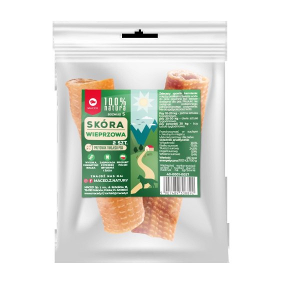 Naturalna, suszona skóra wieprzowa - zdrowa i smakowita przekąska dla psa.