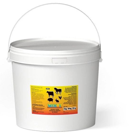 Mieszanka paszowa uzupełniająca mineralna dla zwierząt. Mik 1 zalecany jest jako dodatek do pasz gospodarskich dla wszystkich gatunków zwierząt.