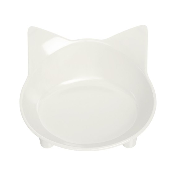Plastikowa miska dla kota, pozwala pupilowi na swobodny dostęp do pożywienia .