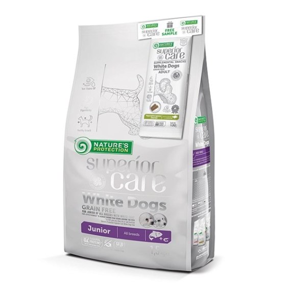 Nature's Protection Superior Care Grain Free White Dog Junior All Breeds 1,5kg + Dental Snack White Dogs 50g - Opis Produktu