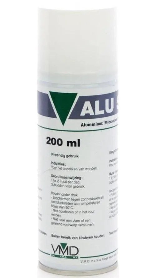 VMD ALU-Spray 200 ml to preparat przyspieszający proces gojenia ran dla zwierząt domowych. Ma formę sprayu, dlatego łatwo się rozprowadza bez konieczności dotykania zranień, co mogłoby dodatkowo zniechęcić zwierzę do tego typu zabiegów. Zawiera aluminium, którego zadaniem jest przede wszystkim przyspieszenie regeneracji tkanek. Preparat nałożony dwa razy dziennie na ranę tworzy na niej warstwę ochronną zapobiegającą dostawaniu się patogenów do tkanek. Dodatkowo działa też antybakteryjnie, dzięki czemu nie dopuszcza do dodatkowych nadkażeń.
