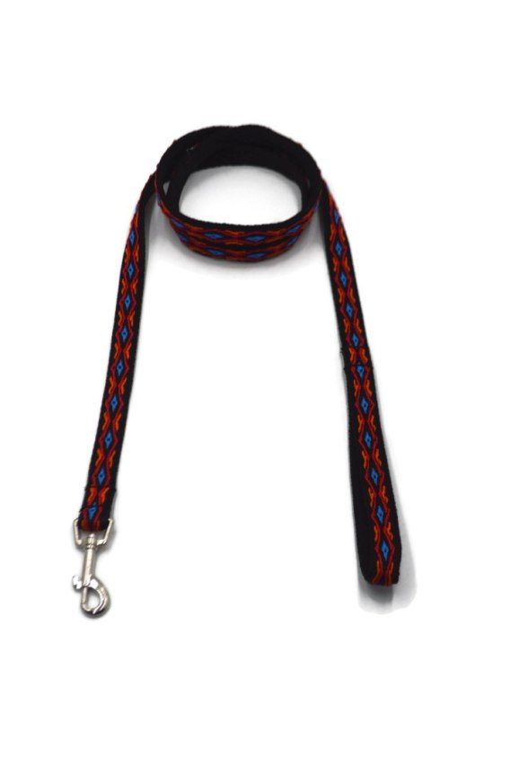 Prosta, solidna podwójna smycz dla psa. Gruba, mocna taśma romb.