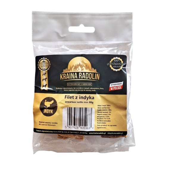 Filet z indyka to naturalny gryzak dla psa, który dzięki poddaniu specjalnemu suszeniu charakteryzuje się większą odpornością na gryzienie. Gryzak ten oprócz zaspokojenia naturalnej potrzeby żucia i gryzienia przez psa, jest cennym źródłem witamin i minerałów, które wspierają prawidłową pracę układu pokarmowego, a także pozytywnie wpływają na układ nerwowy psa. Suszony filet z indyka to doskonałe uzupełnienie codziennej diety psa, dodatkowo jego walorem jest hipoalergiczność i niskotłuszczowość, więc jest przysmakiem dietetycznym.
