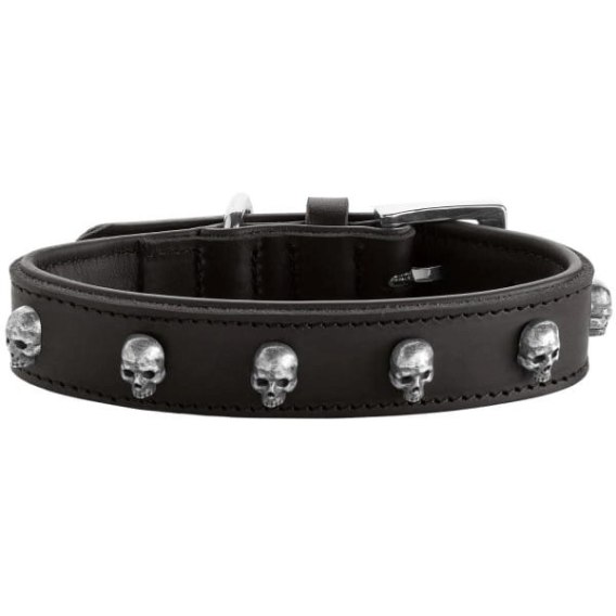 Ozdobą tej kolekcji są starannie odlewane czaszki, które nadają obroży charakteru. Bezstopniowa regulacja pozwala na precyzyjne dopasowanie obroży do psa, zapewniając komfort użytkowania. Wzmocnienie między warstwami skóry ogranicza ryzyko poluzowania się zdobień, co zwiększa jej trwałość.