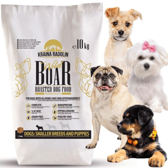 Kraina Radolin Dzik 10 kg mniejsze rasy i szczenięta karma sucha 65% mięsa dla alergików z nadwrażliwością pokarmową