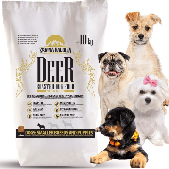 Kraina Radolin Jeleń 10 kg mniejsze ras i szczenięta 65% mięsa dla alergików z nadwrażliwością pokarmową karma sucha
