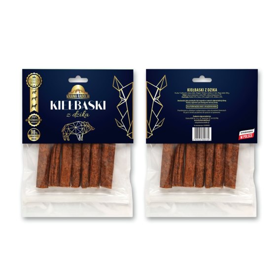 Kiełbaski z dzika są w pełni bezpiecznym przysmakiem, który z powodzeniem może być uzupełnieniem codziennej diety Twojego czworonoga.Mogą być również świetną nagrodą podawaną podczas treningu lub tresury. Naturalne gryzaki stymulują prawidłowe ukrwienie dziąseł, zapobiegają tworzeniu się płytki bakteryjnej i usuwają kamień nazębny.Kiełbaski mają w 100% naturalny skład. Pozbawione są sztucznych dodatków, barwników i konserwantów.