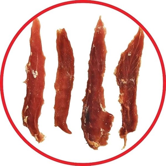 FILETY Z KACZKI dla psów (karma uzupełniająca) wyprodukowane ze 100% świeżego mięsa kaczki bez konserwantów chemicznych. Przechowywać w temp. poniżej 20°C i wilgotności względnej powietrza do 60%. Chronić przed bezpośrednim promieniowaniem słonecznym. Po otwarciu opakowania można przechowywać w lodówce. Produkt nie do spożycia przez ludzi.