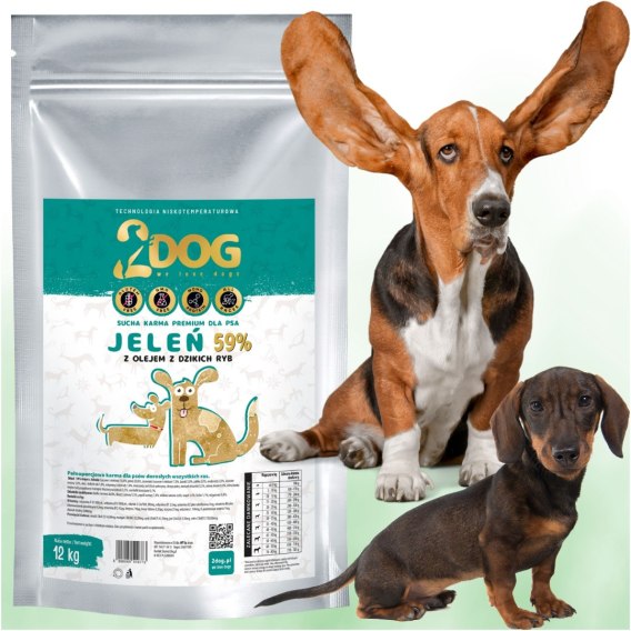 ❤️2DOG Premium - Sucha Karma dla Psów z Jeleniem,Olejem z Dzikich Ryb, Prosem, Czerwonym Burakiem i Jabłkiem 12kg