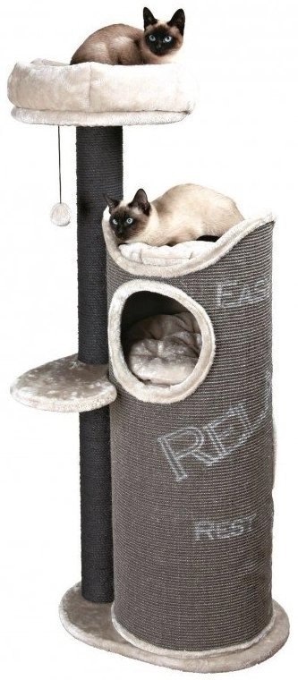 Drapak stojący Juana posiada trzy poziomy z miękkimi legowiskami dla kota. Drapak wyposażony jest także w słupek z sizalową powierzchnią, która sprawdzi się doskonale do ostrzenia pazurów. Wielofunkcyjny do wspinania się, ostrzenia pazurków, zabaw i wypoczynku. Dużo powierzchni do drapania: z powleczonym naturalnym sizalem słupkiem i sizalową powierzchnią na jaskini. Jaskinia idealna do schowania się i oddania relaksującej drzemce. Pluszowa piłeczka z grzechotką, pobudza kotka do zabawy. Platforma widokowa z legowiskiem idealny punkt do obserwacji otoczenia.