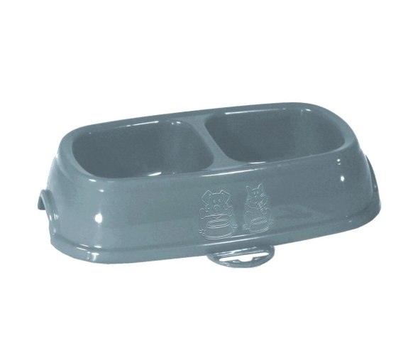 Podwójna miska plastikowa w kolorze niebieskim. Pojemność 0,2l+02l.